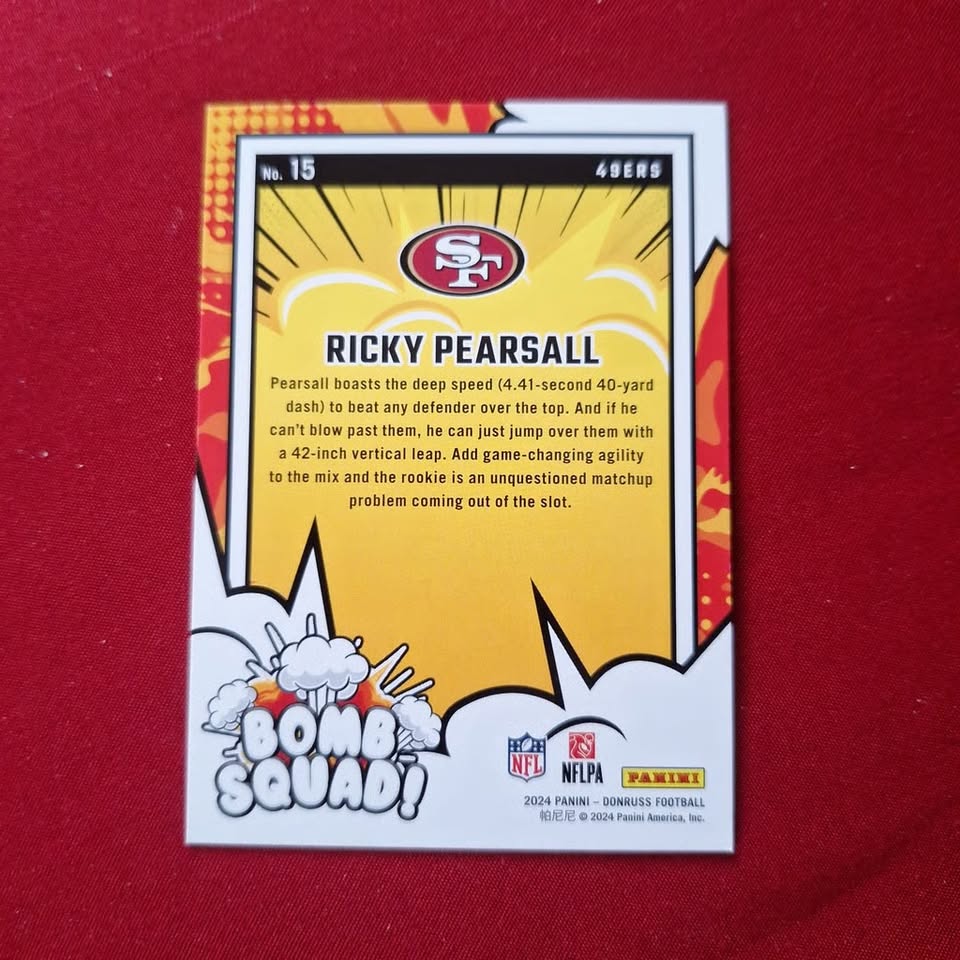 2024 Donruss Ricky Pearsall Bomb squad #15 49ers SHIPPING IS INCLUDED